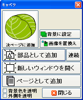 部品として追加する事で自由に動かせます。画像を置き換えの場合は背景画像になります。
